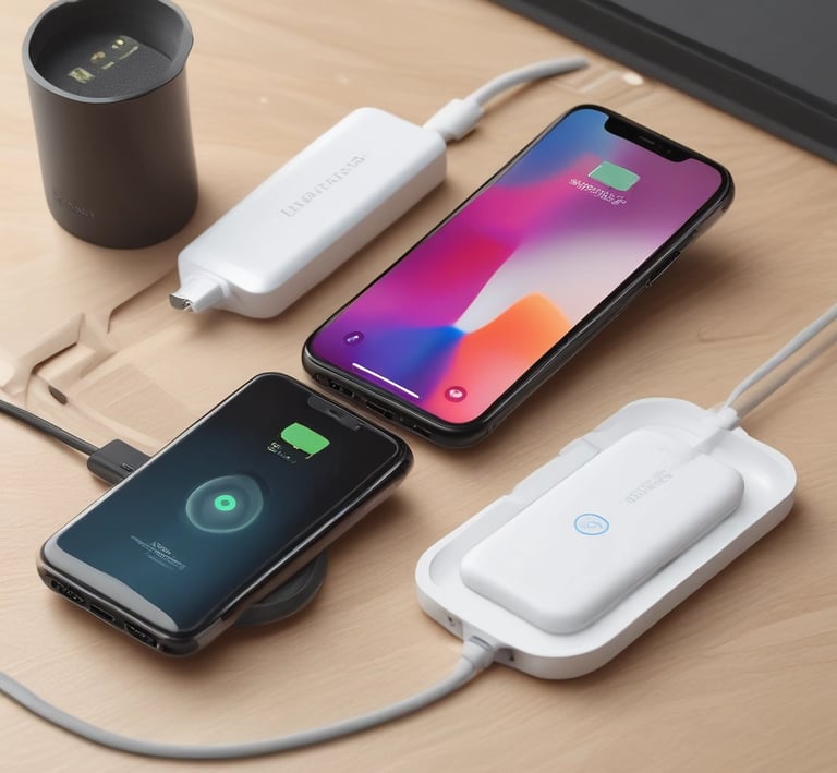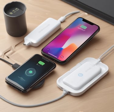Portable and fast-charging solutions, including Qi-certified wireless chargers and high-capacity power banks for everyday use.