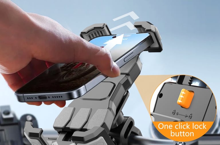 Durable and secure phone holders for motorbikes, e-bikes, and scooters, designed to withstand vibration and outdoor conditions.