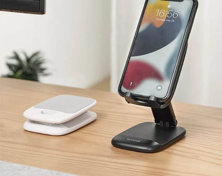 Ergonomic stands for phones, tablets, and laptops, improving comfort and productivity in both office and home setups.